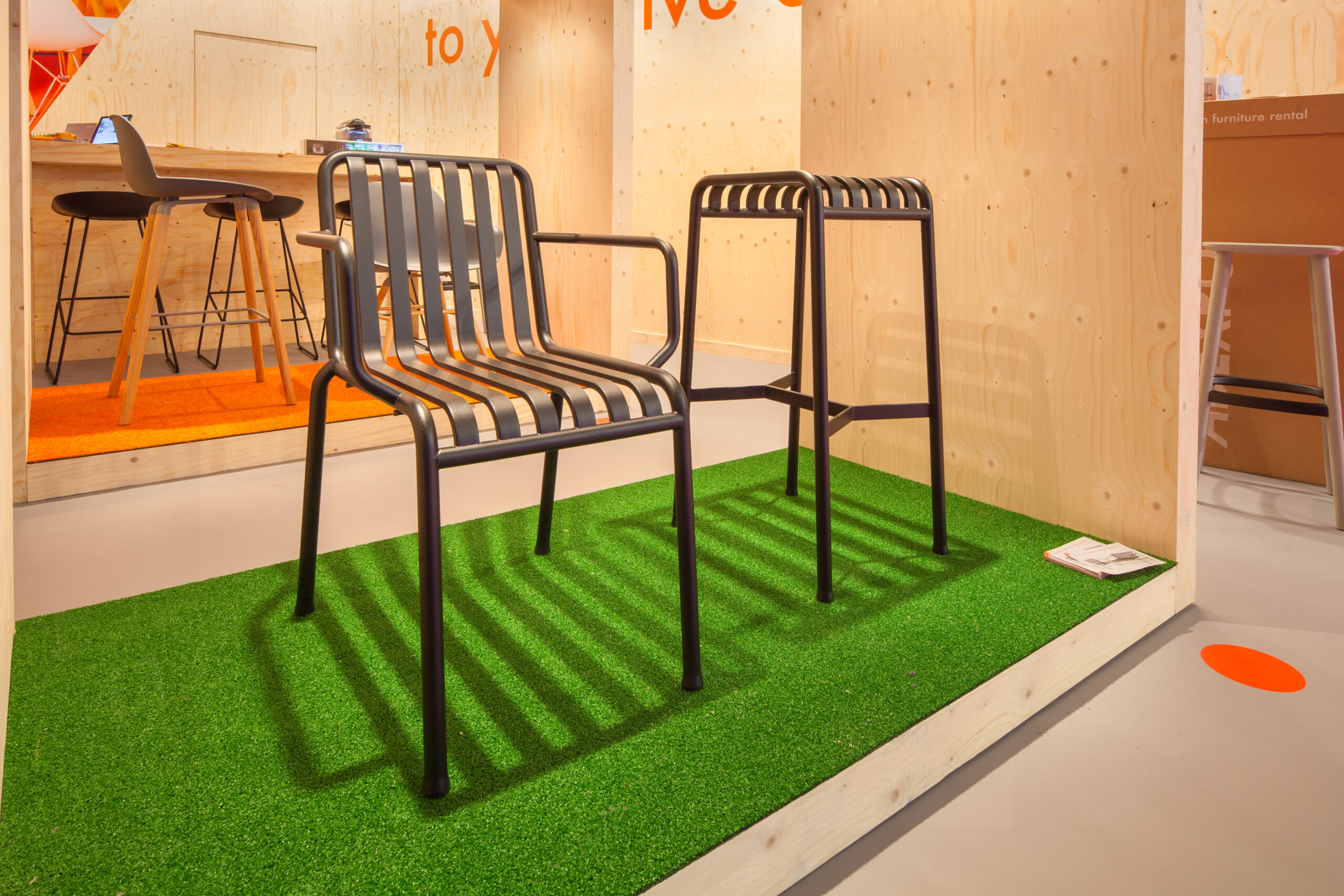 S380The Armchair PALISSADE SMALL anthracite with anthracite base offers a more compact version of the Palissade armchair, without sacrificing style or comfort. The sturdy steel design in anthracite makes this chair suitable for smaller spaces and outdoor use, while the modern design fits perfectly with various event furnishings.