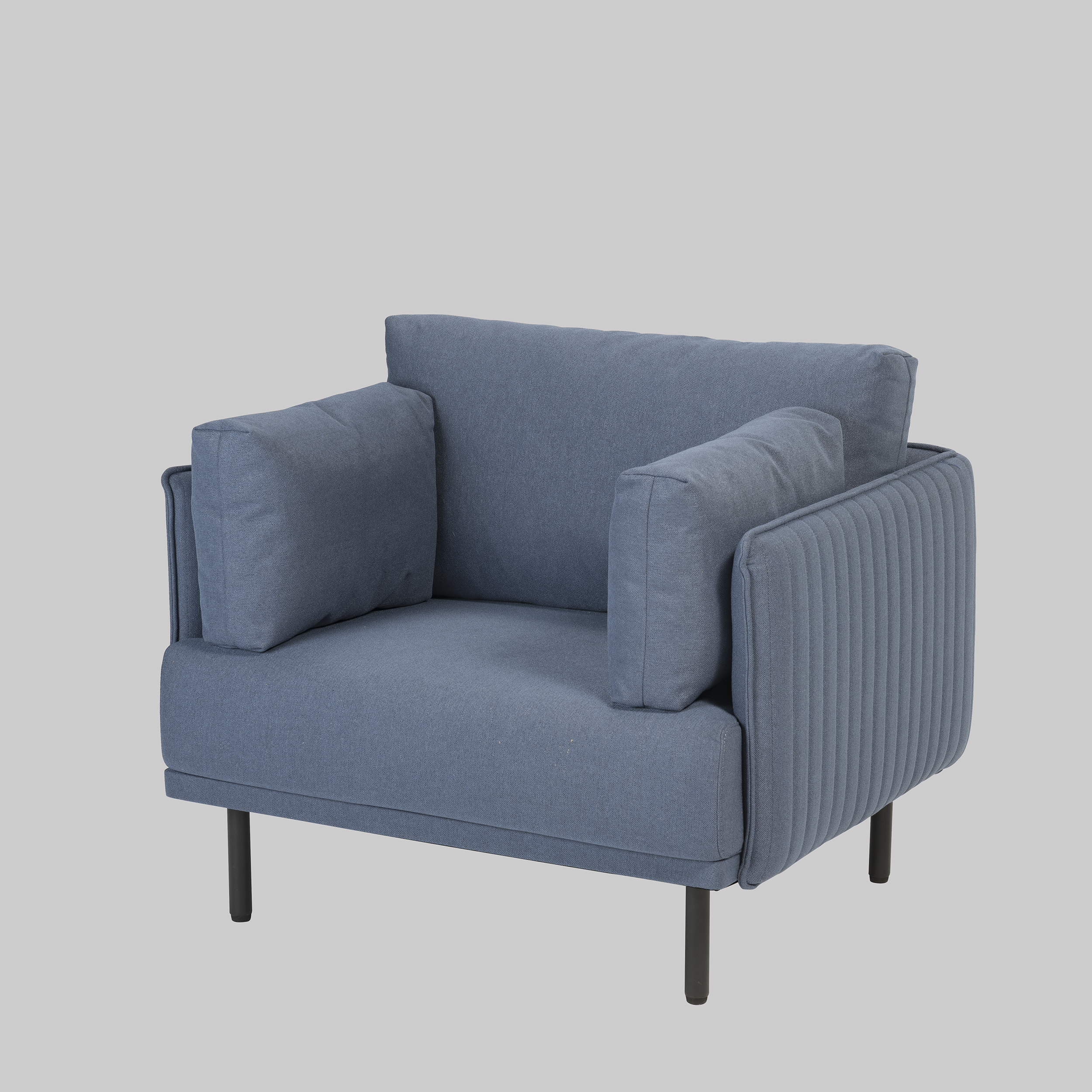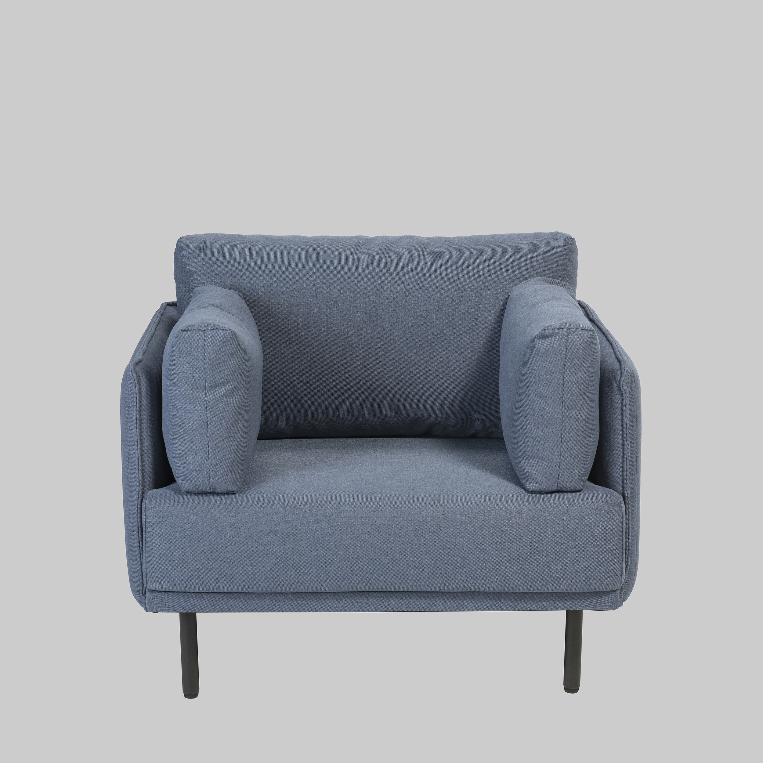 BB504The KIARA armchair in blue stands out with its calm, modern look and provides comfortable seating for trade fairs and events. Measuring 82 cm in height, 99 cm in width and 84 cm in depth, it offers generous space without appearing bulky. With a seat height of 42 cm, it works well in lounge areas or reception settings. The blue fabric adds a refined touch of colour, while the black lacquered metal legs ensure stability. Softly shaped armrests support relaxed seating over longer periods.