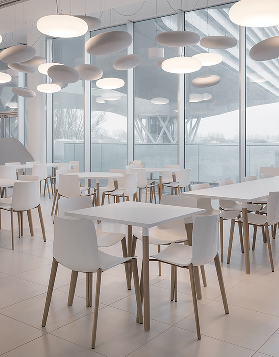 S549The CATIFA 53 Wood chair in white from Arper combines modern elegance with natural warmth, perfect for your exhibition stand. The white plastic seat offers comfort, while the oak legs add an organic touch. With a seat height of 45 cm, this chair is versatile for presentations or relaxed conversations. The light weight of 5.9 kg allows for quick adjustments to your stand layout, ideal for dynamic events.