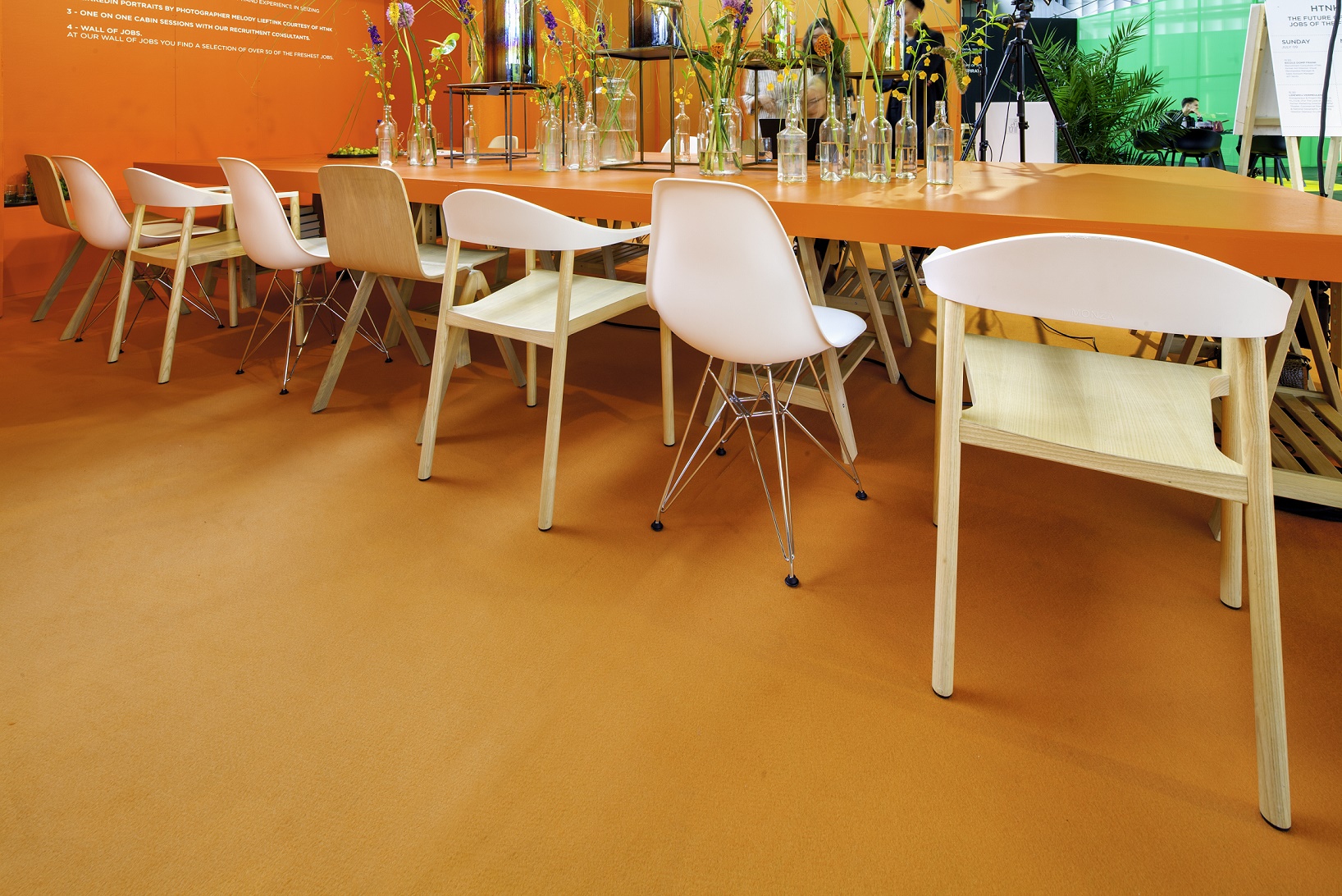 S635The white chair VINTAGE by Tenzo brings a fresh and modern look to your exhibition stand. The white seat and backrest create a sense of space and cleanliness, while the chrome frame provides an elegant finish. The ergonomic design offers comfort during presentations or long conversations. Ideal for light, open stand concepts, technology fairs or as a contrast in industrial designs. This chair is perfect for presentation rooms, information stands or as a comfortable seat in lounge areas during busy events.