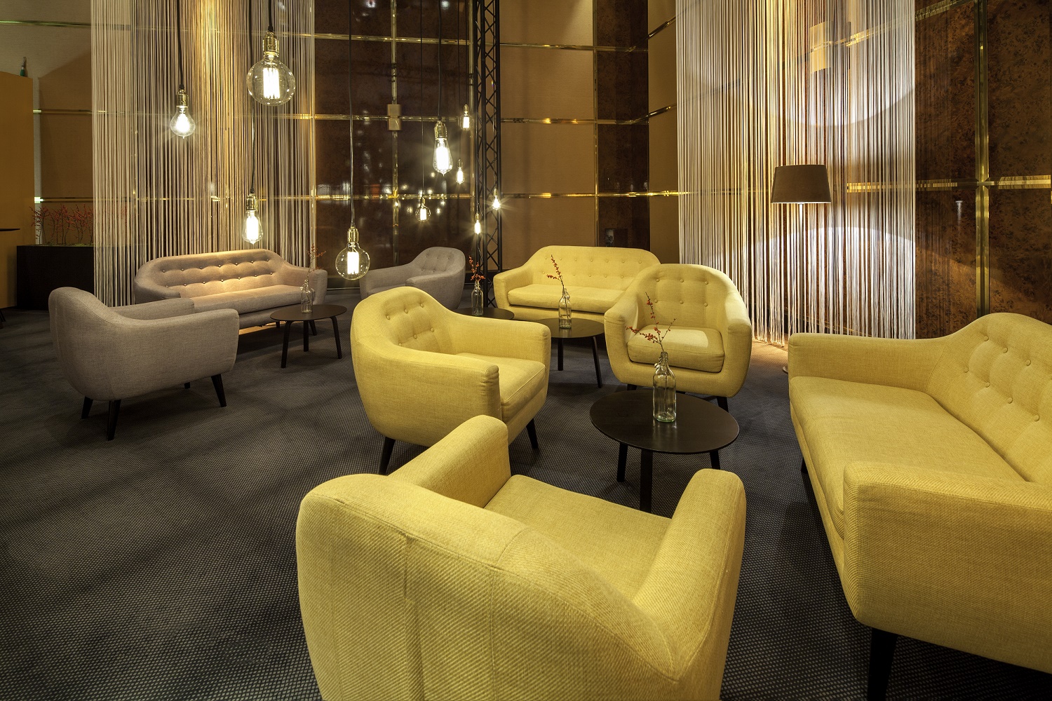 BB151The SIT DOWN chair in ochre yellow with a black base offers a bold colour combination that will brighten up any business space. The warm ochre yellow upholstery draws attention, while the black base provides a contemporary and stable base. This chair is perfect for waiting areas, exhibition stands or lounges where style and comfort are important. Thanks to its durable construction, this chair is ideal for intensive use at business events.