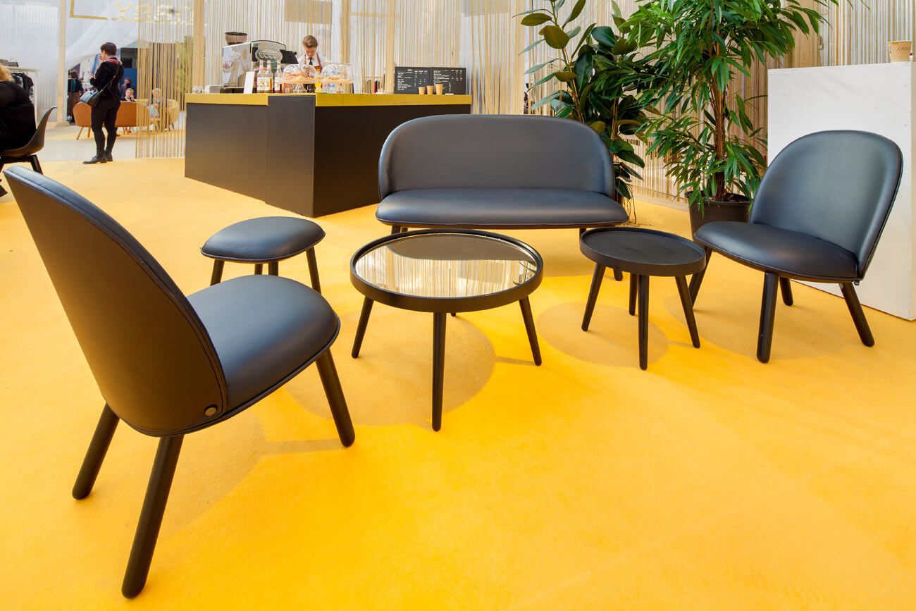 BB148The sofa ACE in black with a black frame is a stylish and comfortable seating solution for business events. The black upholstery and the sleek black base provide a modern, minimalist look. This sofa offers comfort and fits perfectly in lounge areas, exhibition stands or meeting rooms where style and functionality come together. Rent furniture from Adexpo for your exhibition or event.