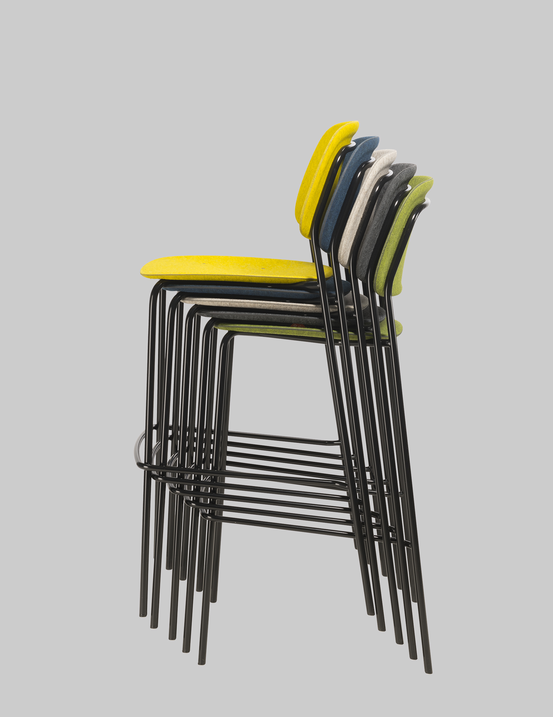 The stool HALE STACK in yellow and black is based on the HALE chair: simple, functional and straightforward. The seat and backrest are made of PET Felt - recycled plastic bottles. This technology combined many traditional production steps into one smart 3D pressing technique. Hale was developed in collaboration between De Vorm and Ivan Kasner and embodies shared values, resulting in a product of elegant simplicity. The design ensures versatility, making it suitable for different spaces.